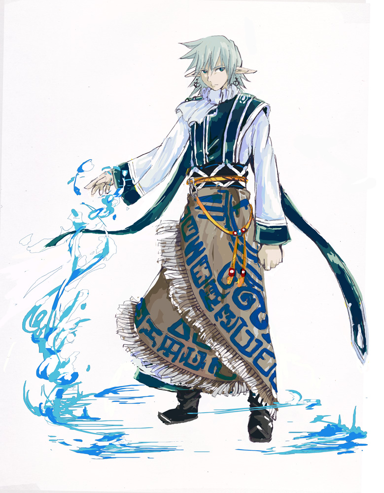 水竜。地上生まれ。名前は燕水。 口数が少なく寡黙な印象を受けるが、小さい頃に生まれた他者に対しての不信感と、自分に対しての嫌悪感を拭いきれないため。実は、誰よりも相手の痛みを分かることの出来る優しい心の持ち主。 本人の意思とは関係なく、大きな力がその身に宿ったため、普通の生き物でありたかったと常に思っている。皆と一緒に過ごす時は利便性から人型でいるが、そうで無い時は、本来の竜の姿や、気ままにいろんな動物の姿で過ごすことが多い。人型の生活にあまり慣れてないせいか、たまにトンチンカンな事を言う。 また、水の力を持った竜は、代々治癒の力が強いことを活かし、魔生物を癒す治癒術を勉強し身につけている。 |