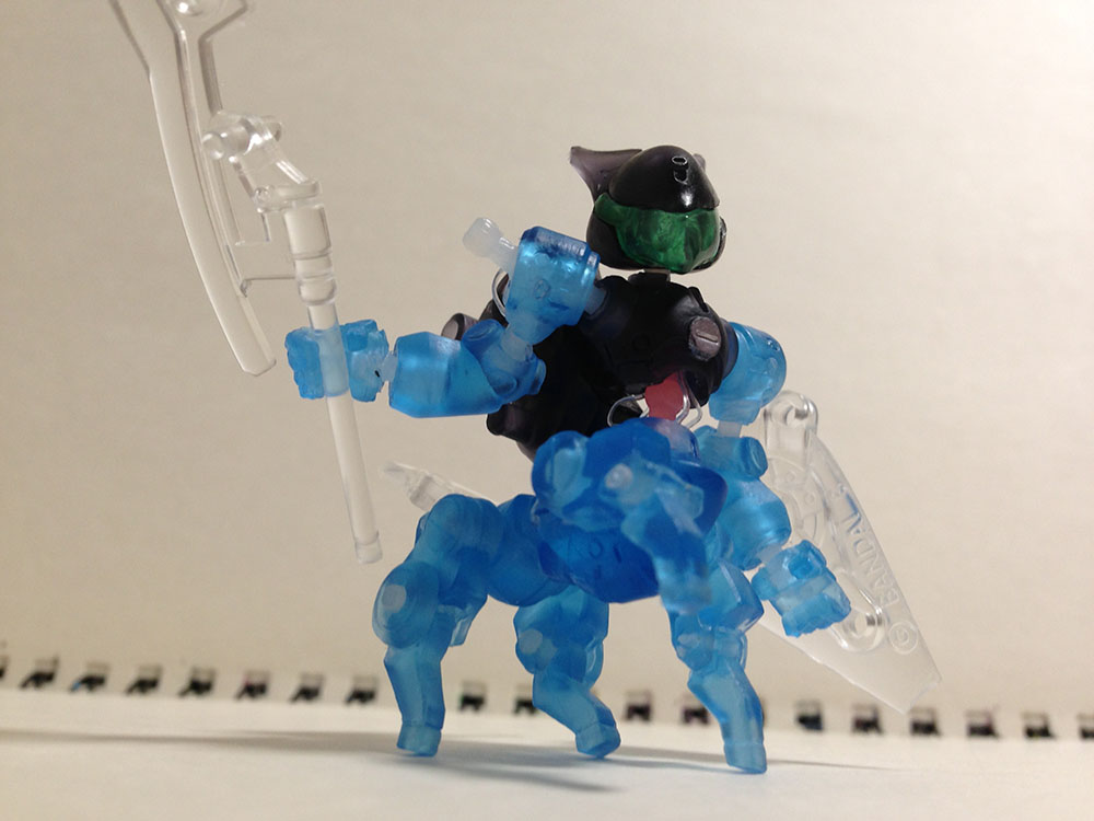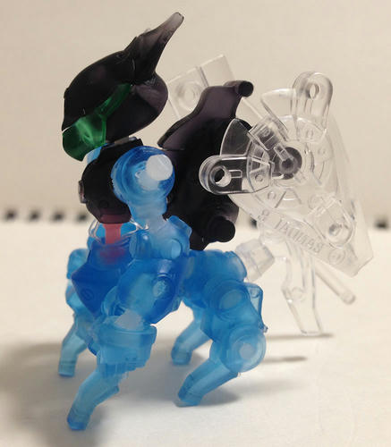 友人から聞いた〈破幻のジスタ〉改造が、とても面白そうだったので作ってみました。 その作り方というのが、すごくシンプルでローコスト! ==<作り方>========================== 稼動させたい部分をカッターで切って、 100均の結束バンド(!?)でボールジョイント(!!?)を作り、 それを、各部にハメ込み、超稼動にする。終わり。 ================================= (詳しくは、ジスタ改造方法紹介様ページなどをご覧ください。) 超超超低コストで、稼動を作れ、メッチャかっこよくなります、コレ! 私のジスタは、ベースは井上、頭部&バックパックは鳥丸にしてみました。 (ジスタ公式ホームページの5番と7番) 二体合体で名づけて馬丸! 前から 肩はボールジョイントつけて出しっぱなし。 こっちの方がカッコいい気がしたので。 お腹の赤いボールジョイントはアクセント。 右手の肩~肘と、腹回りに、細い結束バンドの紐を使い ディテール(趣味感)をアップ。 配線とかがメカから出てるのってなんかカッコいいじゃん? (デジモンの見すぎ) 横から 後ろ アクション 馬部分の四足は、各付け根と、肘(?)と、踵(?)と、腰が稼働。 尻尾は別キャラの稲葉の頭から拝借。 メタメタに切り刻んで抽出という、組換えトイの遊び方ではない方法でGET。 …ゴメン稲葉。 尊い犠牲のおかげで三点立ちが可能になりました。 ケンタウロス型キャラなので、この定番ポーズがつけたかった! ゆるせ、稲葉! ジャンプ 頭部は鳥丸なので、上を向いたり引いたりと稼動高め。 斧は両手で構えられます。 ダッシュ攻撃。 そして出会い …合体! おすわり ちらっ くぅん はっはっはっ(息) お手 伏せ あれのポーズ 以上、ジスタチョコ改造、〈井上&鳥丸=馬丸〉でした。 |